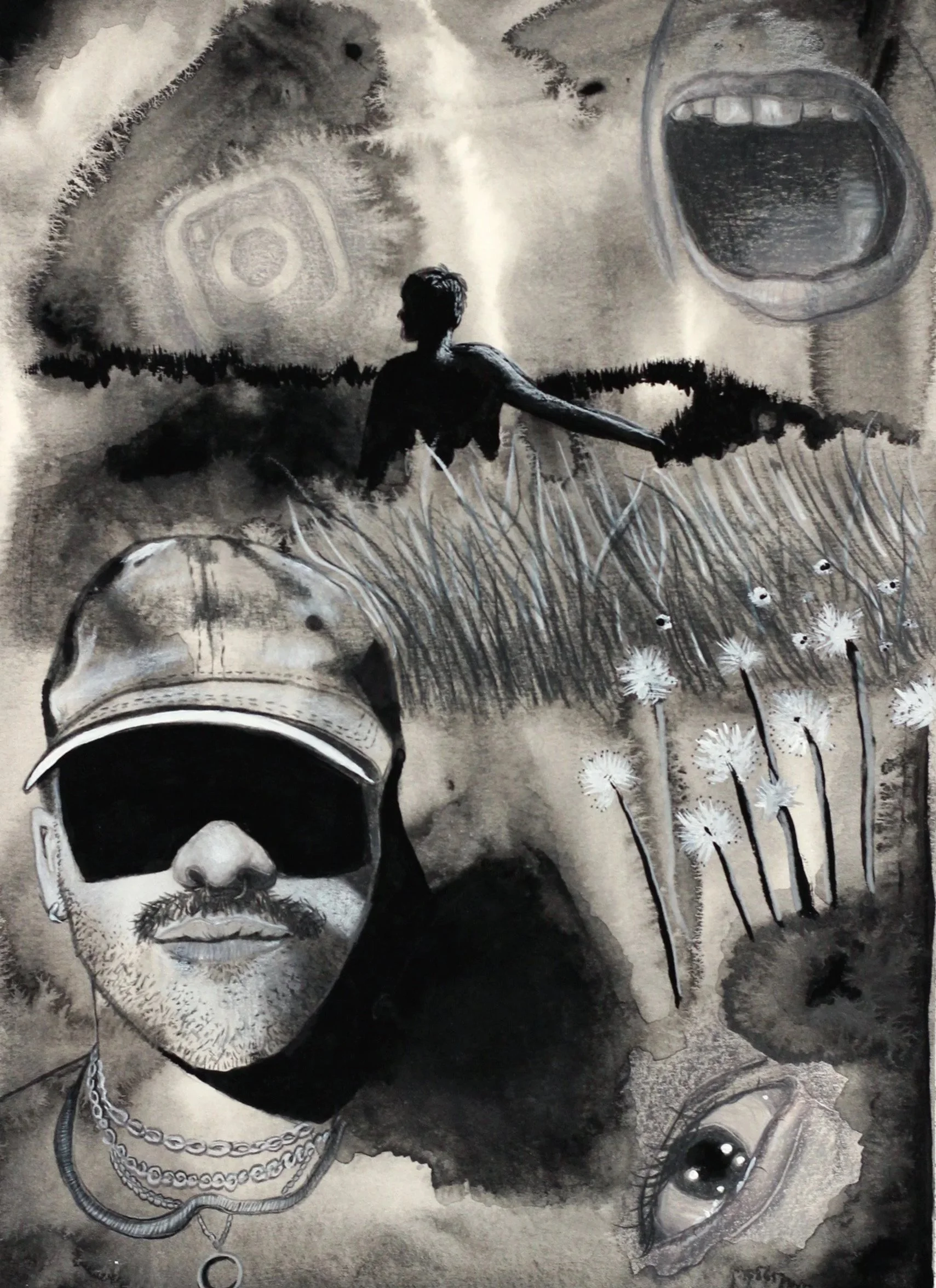 Acrylic, ink, and pencil on paper